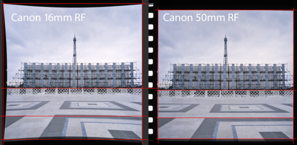 On the left is an image I scanned from a strip of 70mm film. The pincushion distortion is there because Adobe Camera Raw did not find the lens, nor the profile of the lens in its folder of lens profiles. ACR chose a Canon RF 16mm lens instead, and that resulted in extreme pincushion distortion. This is a mismatch between the actual lens and a wild guess that ACR made. On the right is the same image with a Canon 50mm RF lens profile applied. Notice that the pincushion distortion is (mostly) gone using that lens profile.